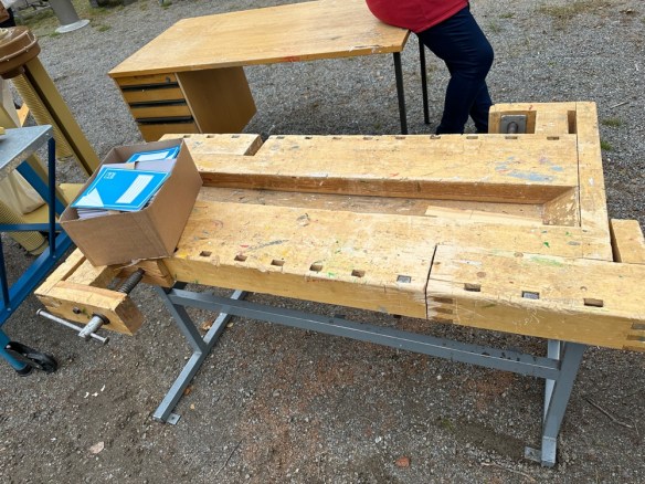 Målet var att komma hem med en snickarbäck, som inte kostade skjortan. Vet inte om det berodde på skicket (ungefär som alla andra) eller för att jag var enda kvinnan som budade på snickarbänkarna men fick den till närmare halva priset mot vad de andra kostad. Win Win i alla fall.